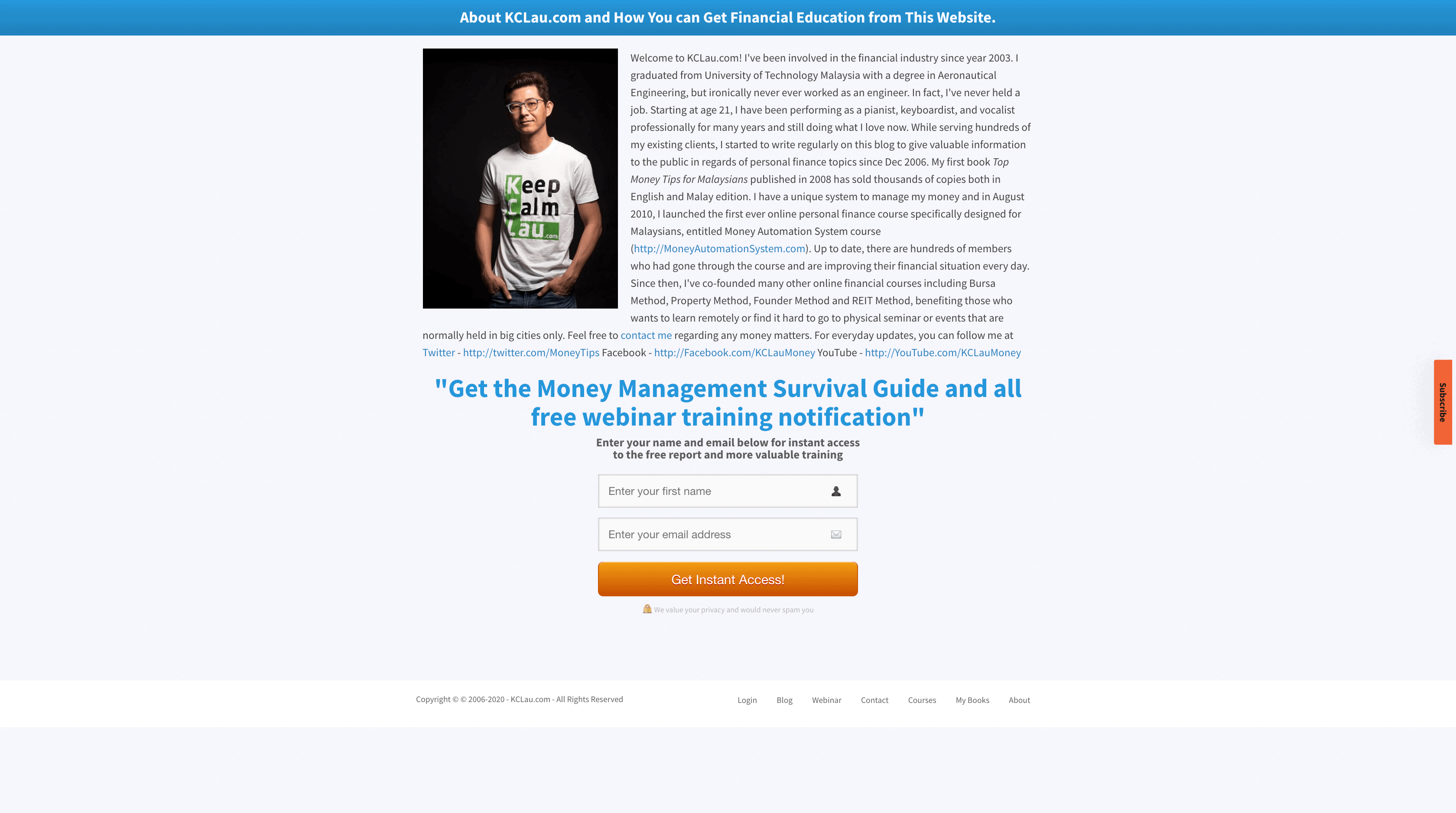 KCLau 的生意頭腦也真的是強,真沒愧對他理財專家的身分。他整個部落格現在可是一門擴張中的生意。現在正擴張 Facebook、Youtube上。而且 KCLau 的行銷手段也是五花八門。他會用 Facebook Messenger Auto Responder、Email Marketing、各種網路廣告等等。