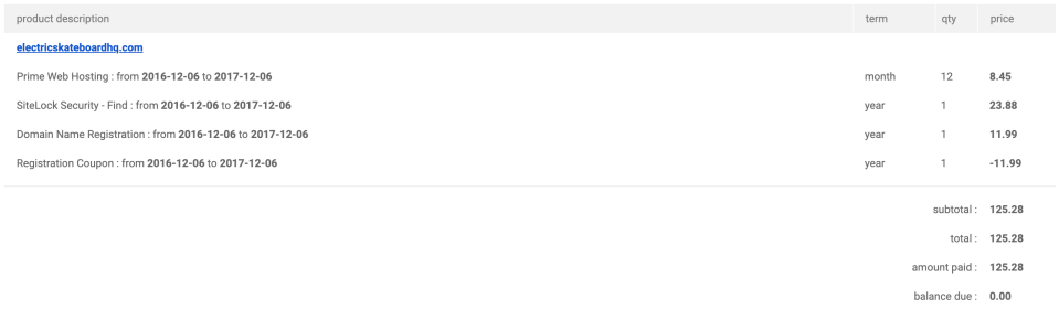| Web Hosting and Domain | $125.28 |